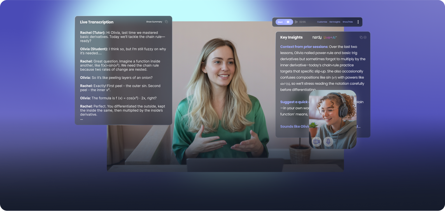 Nerdy’s session context shows me where students struggled so every lesson builds on real progress.