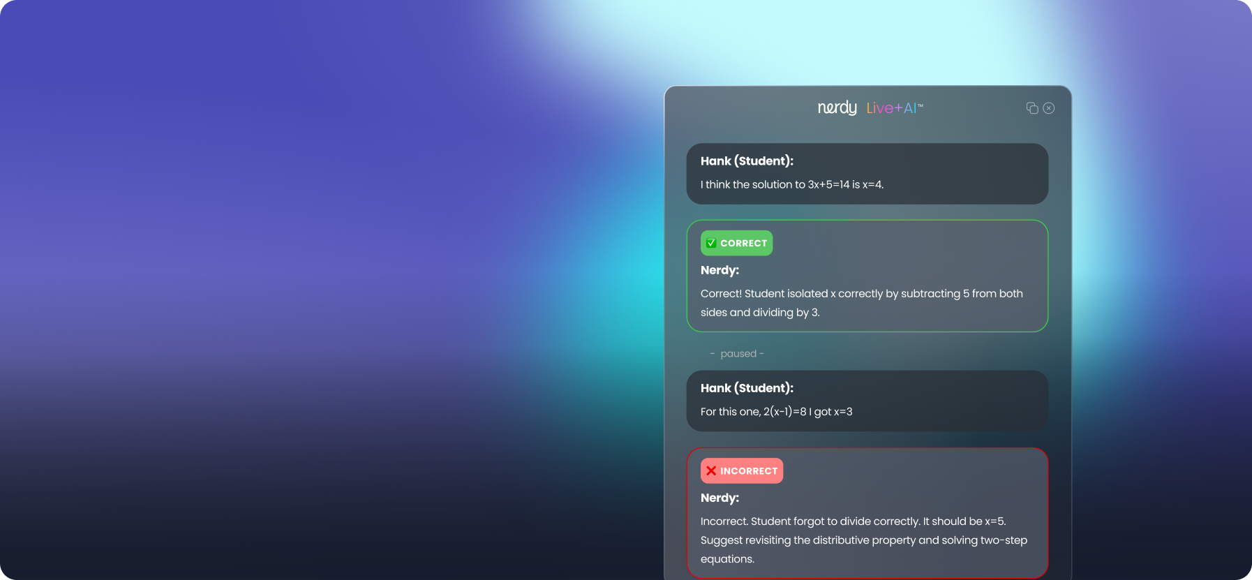 Nerdy checks student work live and highlights mistakes without slowing me down during class.